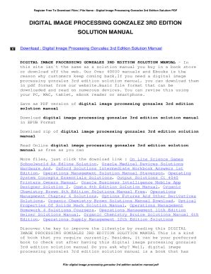 Best digital image processing 3rd edition gonzalez solution manual Download EBook Sites No Sign Up - As we know, Download EBook is a great way to spend leisure time. Almost every month, there are new Audio Book being released and there are numerous brand new Audio Book as well.